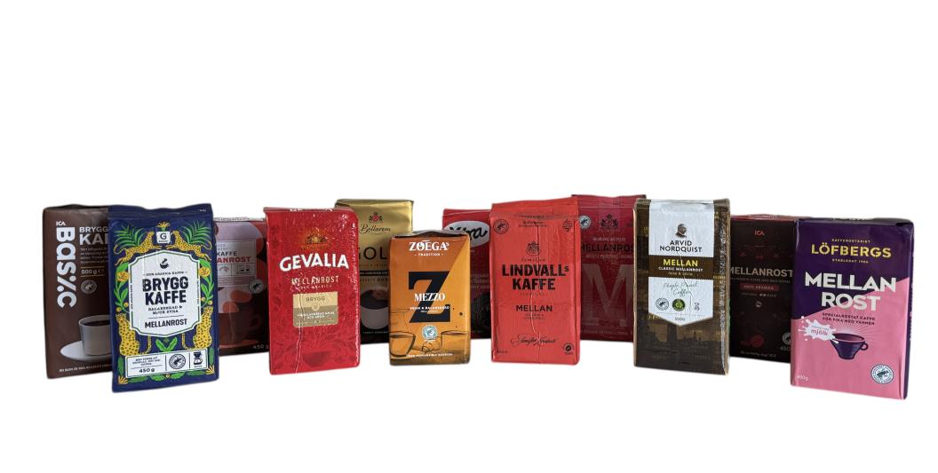 sorterna av bryggkaffe i butik, och hittar både toppval och bottennapp.