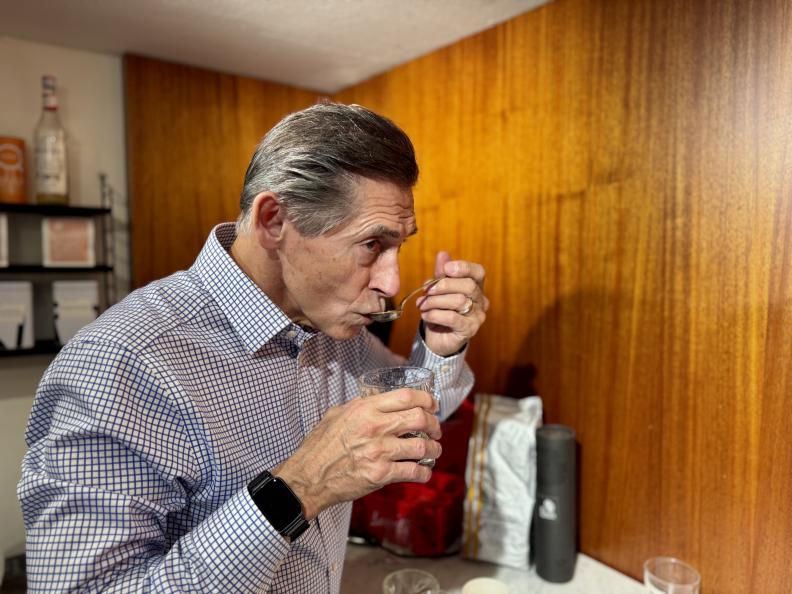 Som en del av testet använder kaffeexperten sked för att sörpla och analysera arom och smak. Foto: Testfakta